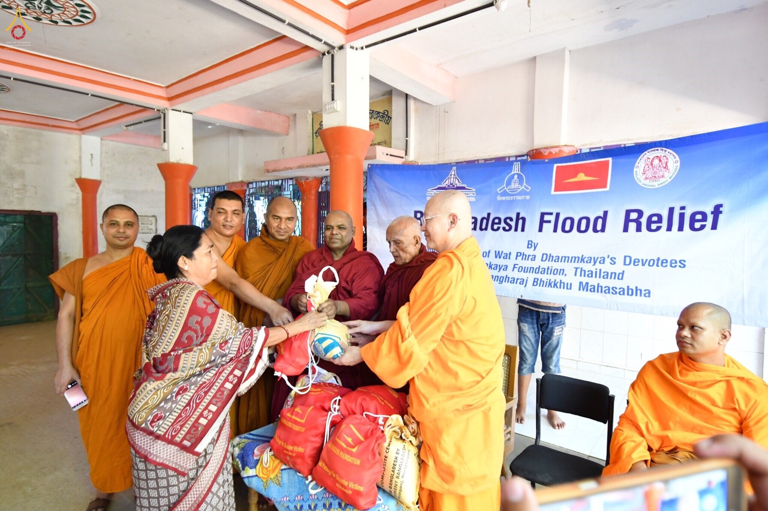 Uncategories ตัวแทนคณะศิษยานุศิษย์วัดพระธรรมกายทั่วโลก, วัดพระธรรมกายและมูลนิธิธรรมกาย นำโดยพระครูวิบูลนิติธรรม ผู้ช่วยเจ้าอาวาสวัดพระธรรมกาย ร่วมกับ มหาเถรสมาคมแห่งบังกลาเทศ (Bangladesh Sangharaj Bhikkhu Mahasapha) ได้เดินทางลงพื้นที่มอบถุงยังชีพช่วยเหลือประสบอุทกภัย 400 ชุด ในพื้นที่เมืองจิตตะกอง ประเทศบังกลาเทศ ระหว่างวันที่ 23-26 มิถุนายน และได้จัดสวดบทธัมจักกัปวัตสูตร เพื่อช่วยฟื้นฟูจิตใจและอุทิศให้ผู้ประสบภัยดังกล่าว ที่ Chandgoan Sakyamuni Buddhist Vihara เมืองจิตตะกองในวันที่ 23 มิถุนายนที่ผ่านมา