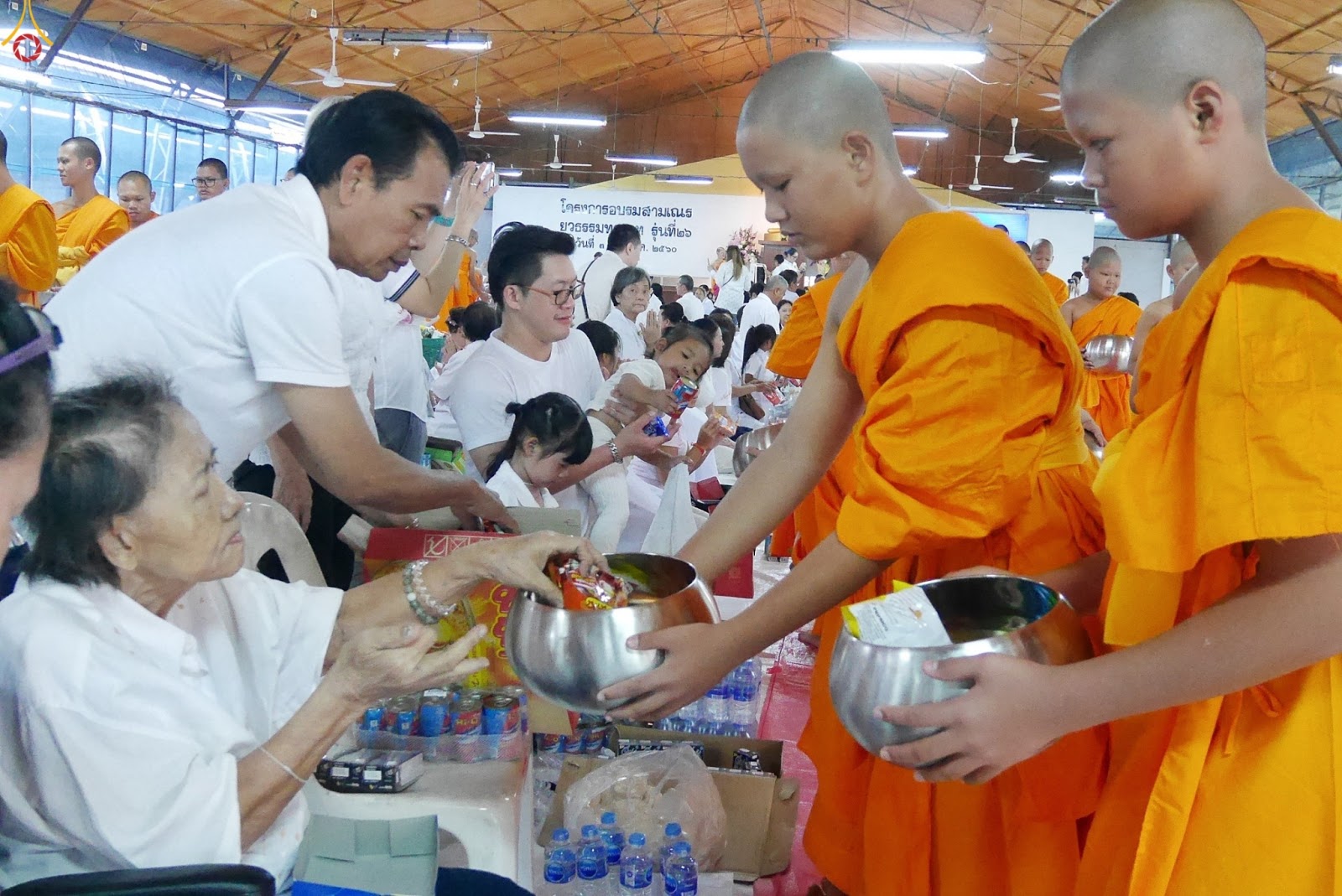 พิธีตักบาตรสามเณรใหม่และพระพี่เลี้ยง จำนวนกว่า 50 รูป