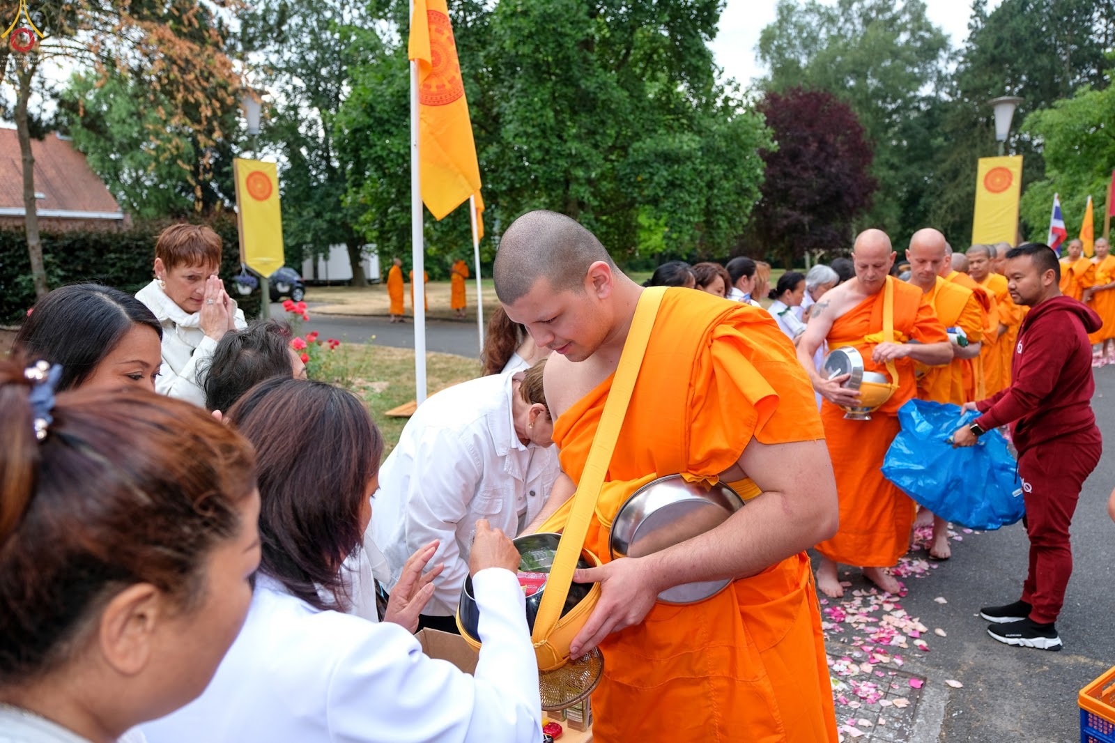 มีชาวบ้านชาวยุโรปและชาวไทยจำนวนมากมาตักบาตรแด่พระธรรมทายาทยุโรป
