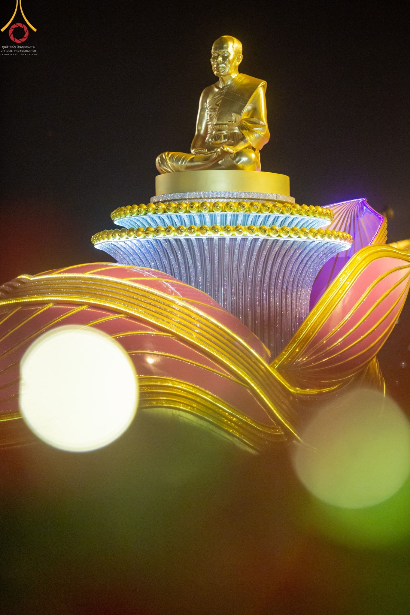 An Online Lantern Lighting Ceremony at Wat Phra Dhammakaya, Thailand.